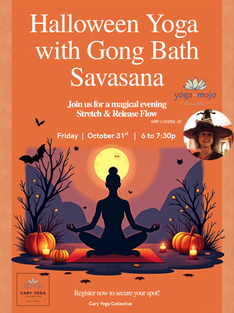 Special Halloween Yoga-Mojo Stretch & Stress Release practice with Savasana Gong Bath~