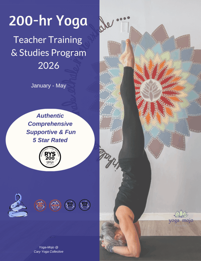 Embark on your journey to becoming a certified Yoga Alliance Registered Yoga Teacher (RYT 200) through Yoga-Mojo’s 200-Hour Yoga Teacher Training at Cary Yoga Collective in Cary, NC.